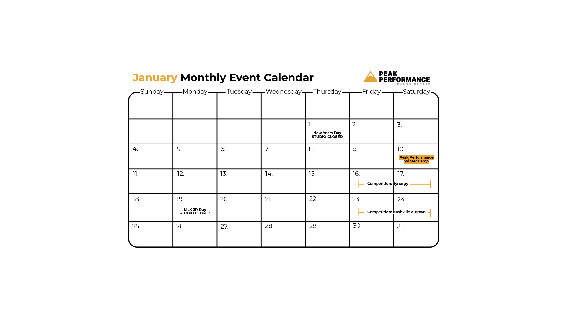 MONTHLY EVENT CALENDAR